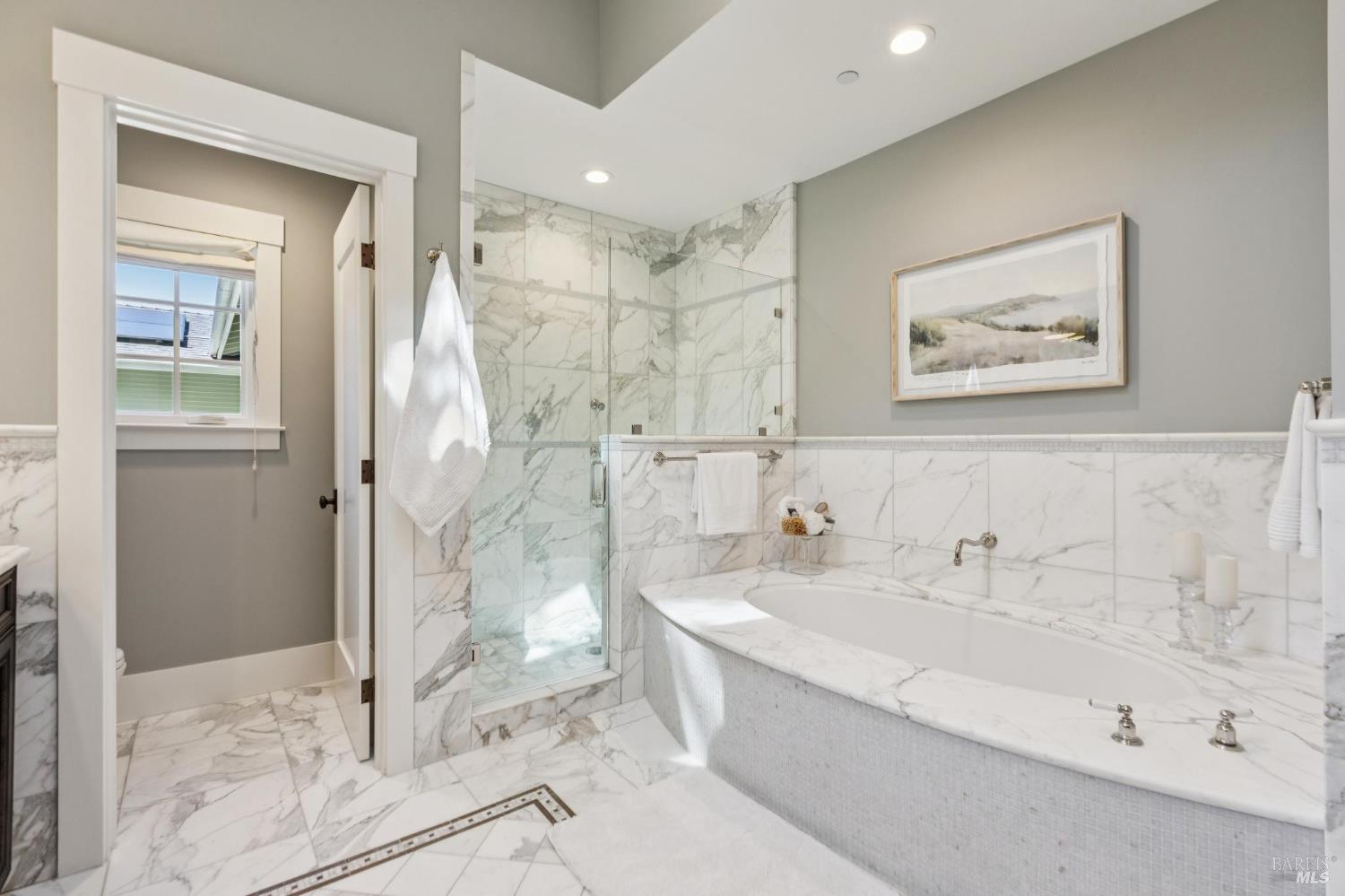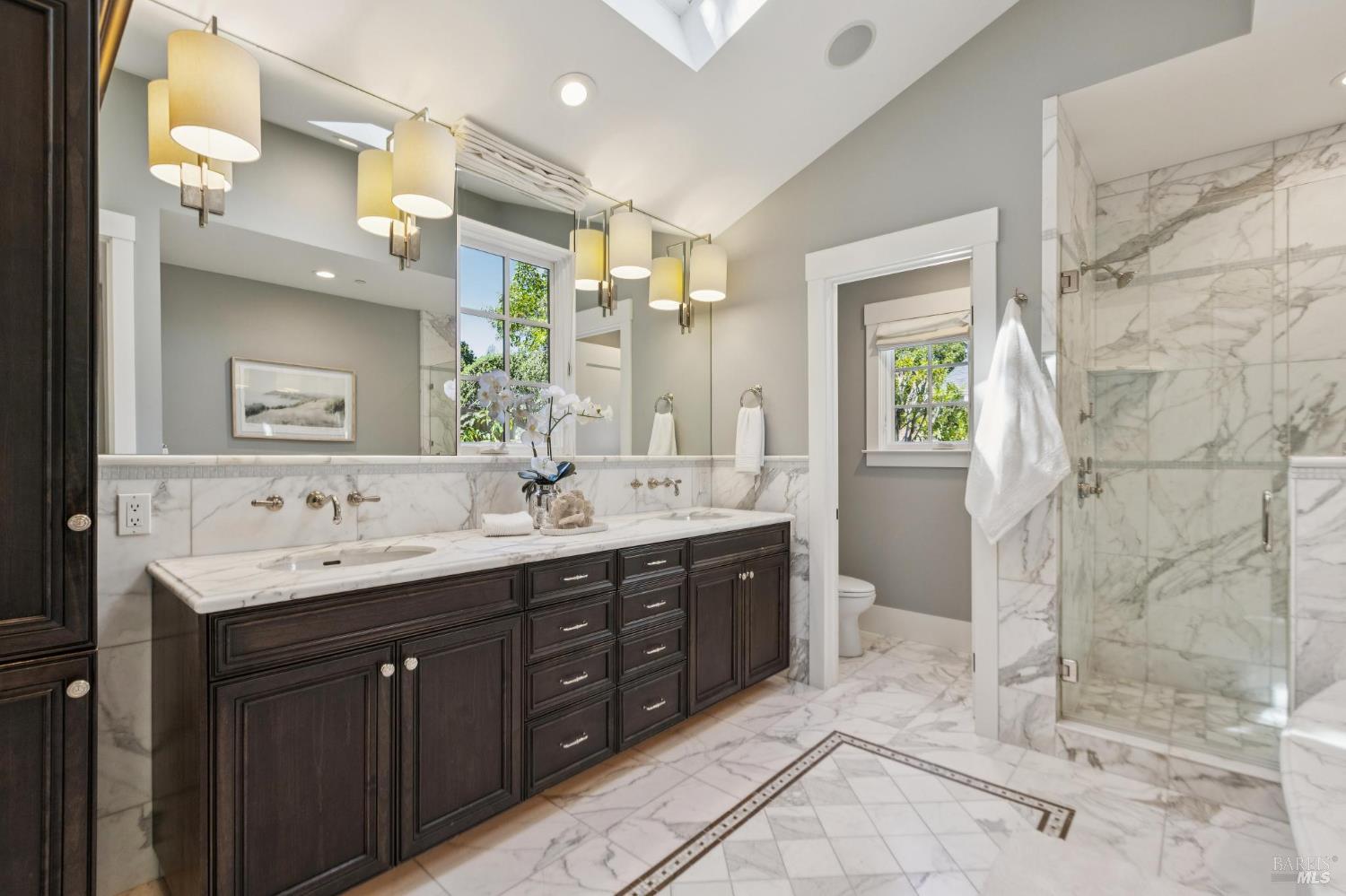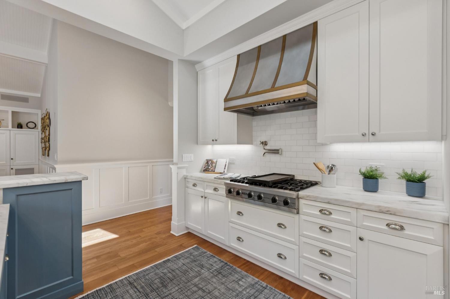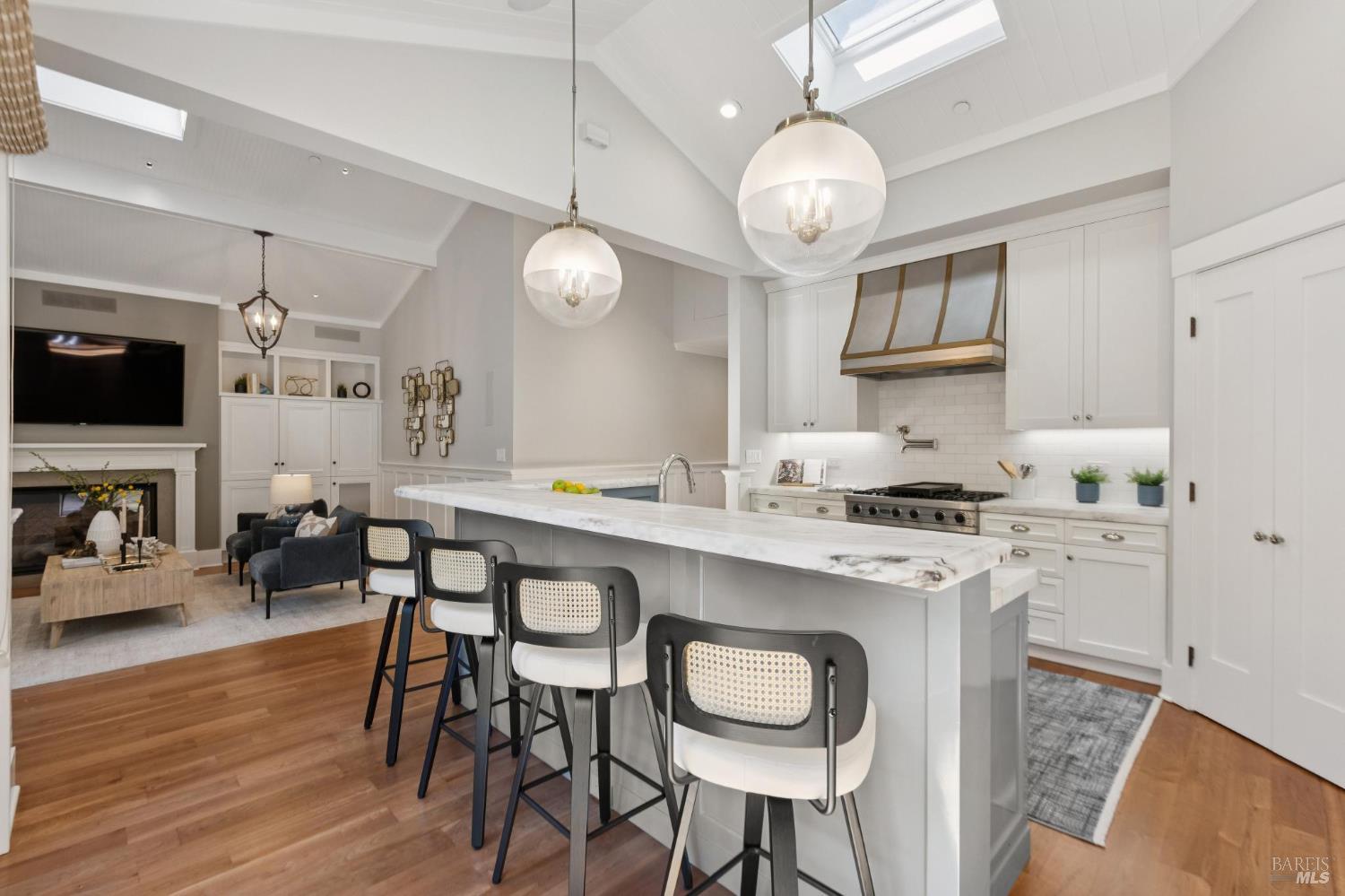 Never before has there been a home with this combination of timeless style, high quality, prime location and the opportunity to have more fun than you can imagine in your own backyard. Stepping into this home you are immediately impressed by soothing paint colors, the rich details of the wainscoting, built in cabinets and soaring ceilings with shiplap details. This is a home where you just feel good and you know that love and happiness is in your future here. The chef's kitchen features chunky marble countertops that feel like they will last a millennium, stainless steel appliances and an eat-in center island to gather around. All of this connects seamlessly with a soaring ceiling family room with built in entertainment system, and also opens to the fabulous and private back yard. This is where the fun begins with a glistening pool, a muli-use sport court, an outdoor kitchen, and multiple moment areas to enjoy with friends and family. You can look forward to making years of memories in this incredibly special one-of-a-kind back yard. The primary suite is blow you away gorgeous, featuring soaring ceilings, large sliders to access the yard, a walk-in closet, and a spa like bathroom that Ceasar would envy. On this same level are two generous bedrooms, a charming dual sink hall bathroom and wow! level powder room. Downstairs is a cozy fourth bedroom which is perfect for guests, an au pair, a home office, or a teenager's lair. Wine lovers will delight in the wine storage area next to the laundry room. No need to worry about high energy bills as this home offers solar, two Tesla power-wall batteries in the spacious two car garage and a new high efficiency furnace, not to mention A/C for those dog days of summer heat. This stunning home is located just blocks from coveted downtown Larkspur offering wonderful dining and shopping opportunities. Award winning schools, trail access to Mt. Tam and a welcoming community neighborhood make this a 10 out of 10 home that you won't want to miss.